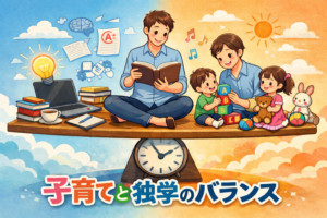僕には、小学2年生と年少の娘がいます。この子たちがかわいいのなんのって。本当に目に指つっこまれようが怒りたくならないくらいかわいいです。 そんなかわいい娘二人がいるので、僕は娘がいっしょに家にいるときは独学はしません。「 […]